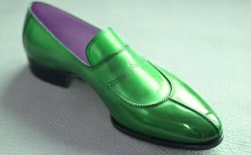 Elegant Cucumber Green Split Toe Slip On Loafers Genuine Leather Wedding Shoes