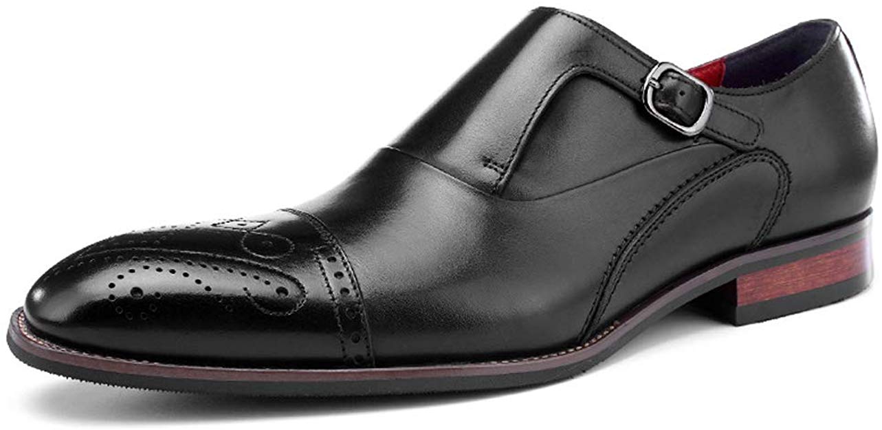 New Luxury Genuine Leather Men’s Monk Strap Black Oxfords Handmade Formal Dress Semi Brogue Shoes
