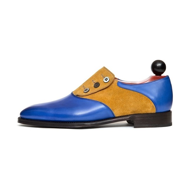 Handmade Men Two Tone Formal Button Shoes, Tan And Blue Formal Shoes