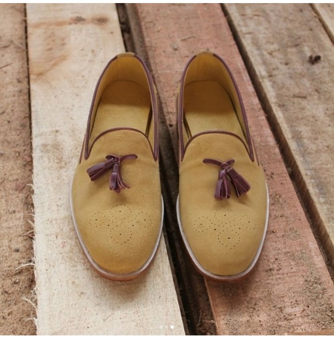 Handmade Men Tan Formal Shoes, Suede Moccasin Shoes For , Brogue Shoes