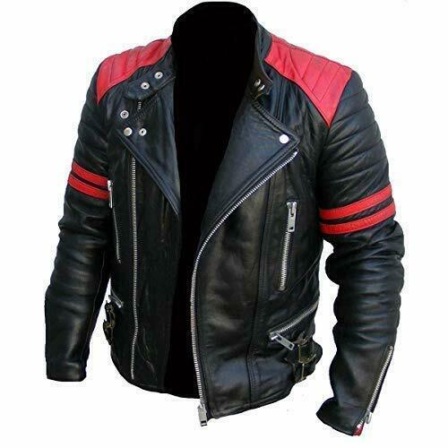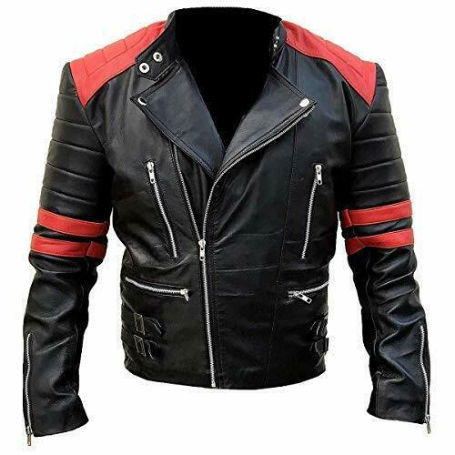 Men Brando Style Red and Black Leather Jacket