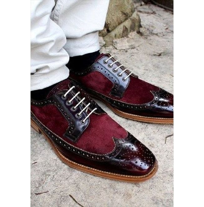 Handmade Men Maroon Leather Shoes, Wingtip Brogue Toe Shoe,Wedding Shoe