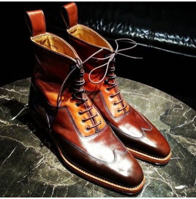 Handmade Men Two Tone Boots, Brown And Tan Ankle Boots, Dress Leather Boot