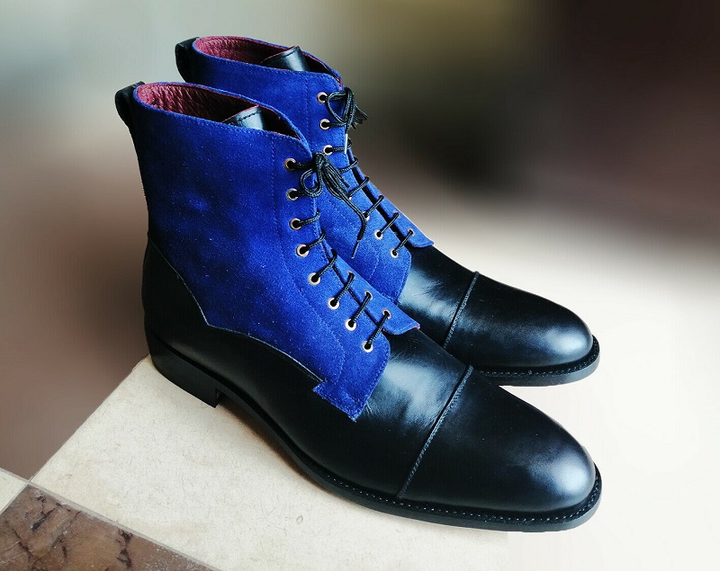 Superior Leather Black Blue Rounded Cap Toe TanSole High Ankle Vintage Men Boots