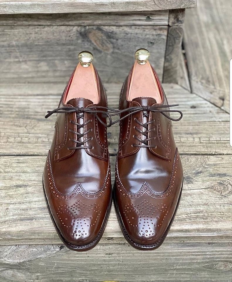 Handmade Men's Brown Brogue Leather Formal Custom Made Dress Shoes