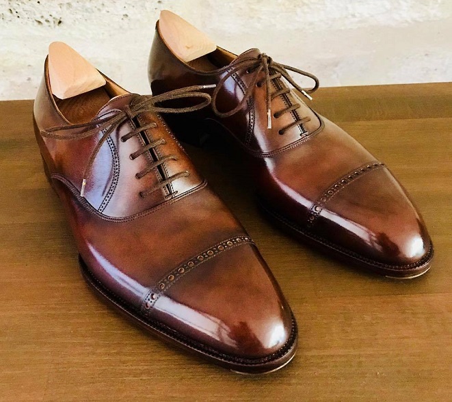 Handmade Cognac Leather Classic Patina Oxfords for Men Custom Dress Shoe