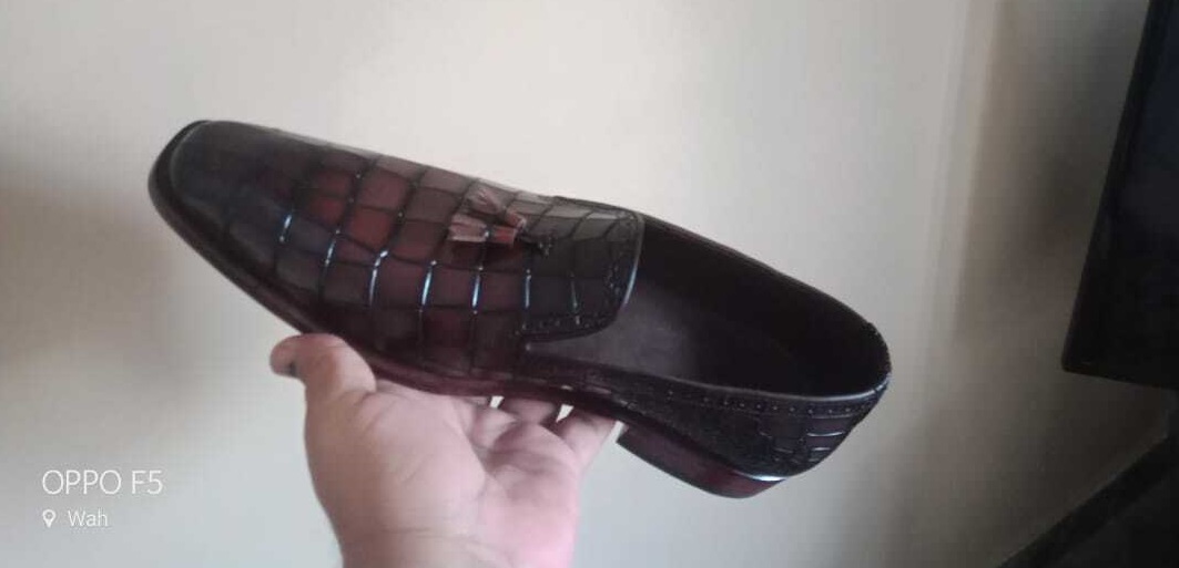 Handmade Men's Crocodile Texture Leather Tassels Square Toe Slip On Dress Shoes