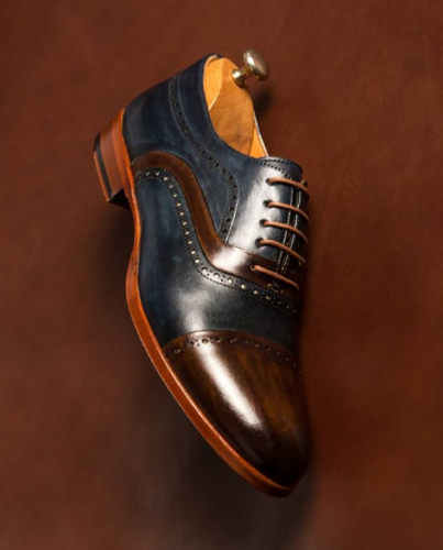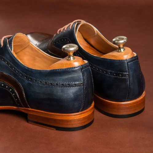 Handmade Men's Brown Blue Brogue Lace Up Dress Shoes, Real Leather Office Shoes