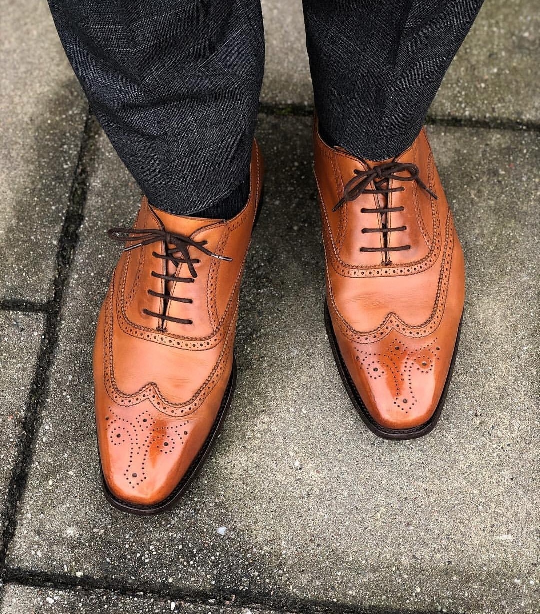 Handmade Men’s Tan Color Leather Shoes, Men Wing Tip Brogue Dress Formal Shoes