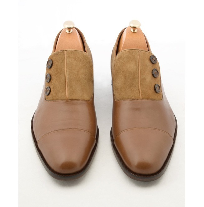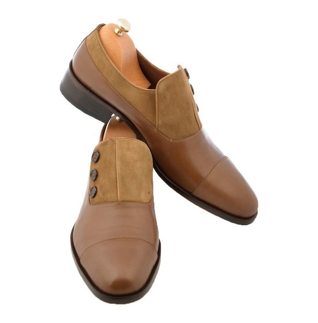 New Handmade Men Tan Brown Shoes, Men's Suede & Leather Shoes,Men's Button Shoes