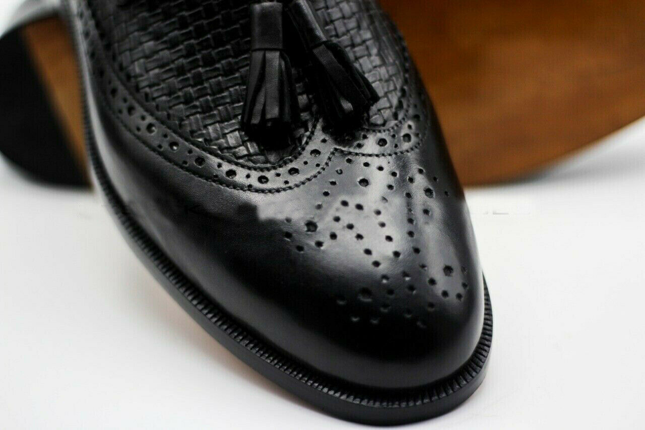 Mens Handmade Shoes Genuine Leather Oxford Brogue Tassels Wingtip Slip On Boots