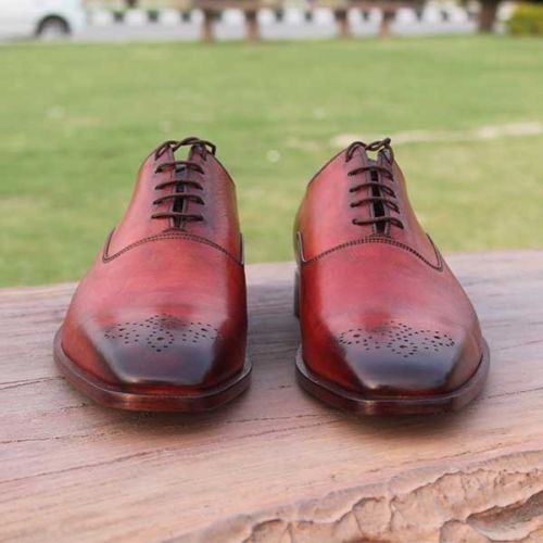 Mens Handmade Shoes Red Brogue Quality Leather Formal Dress Casual Lace Up Boots