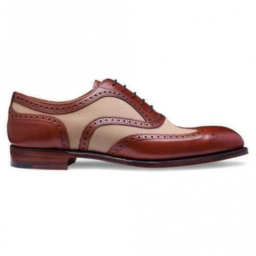 Mens Handmade Shoes Two Tone Tan Leather & Cream Suede Oxford Brogue Wingtip New