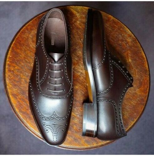 Handmade Men Wing Tip Brogue Lace Up Dress Shoes, Real Leather Office Shoes
