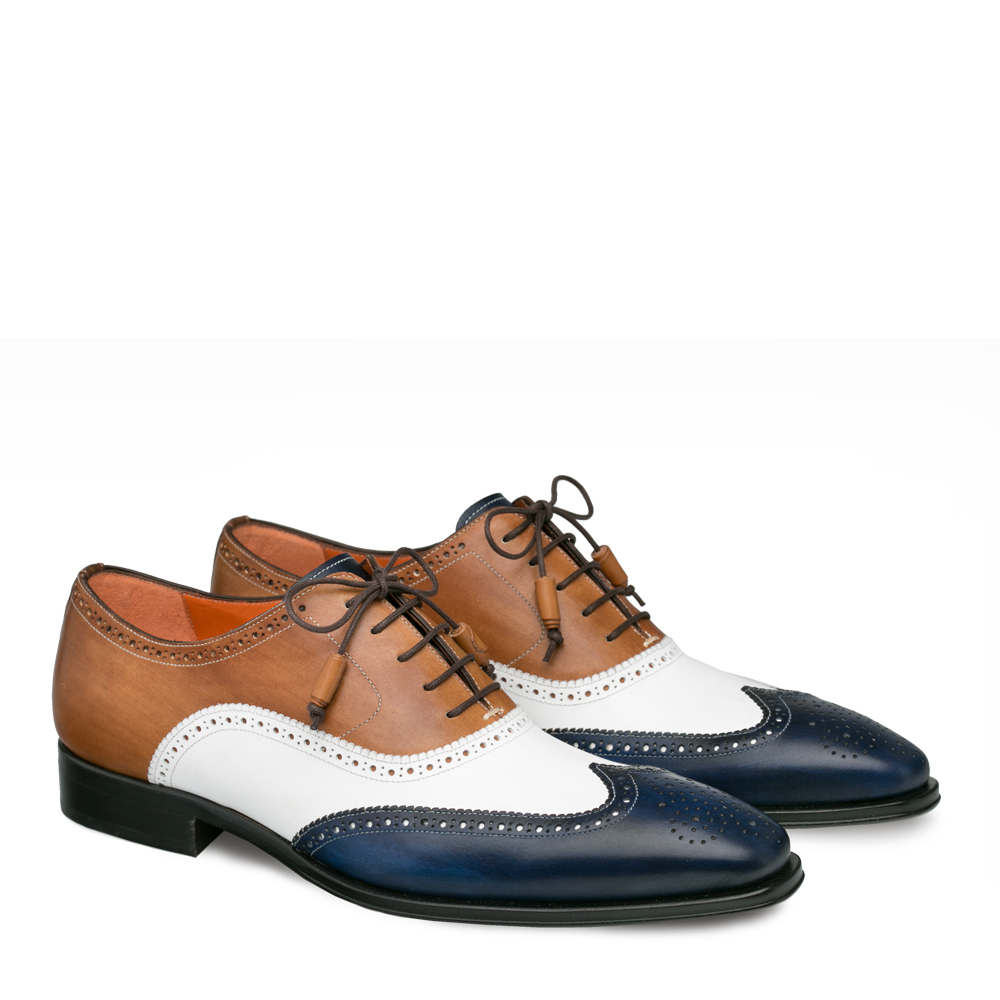 New Handmade Men’s Brown / White / Blue Calf-Skin Leather Oxfords Shoes