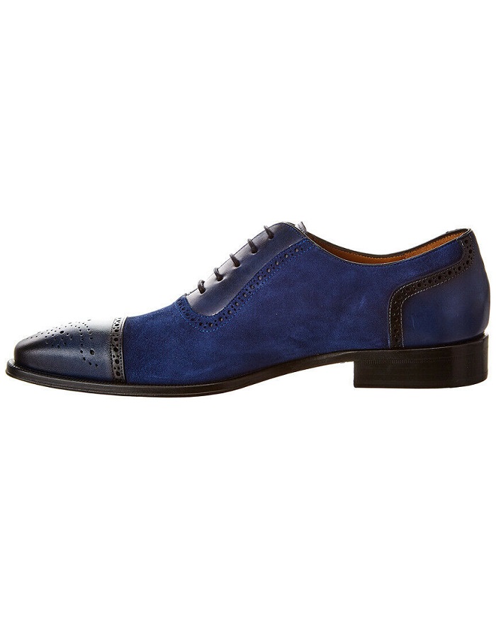 Mens Handmade Shoes Brogue Two Tone Blue Suede Blue Leather Formal Dress Boots