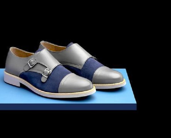 Handmade Suede & Leather Blue Monk for Men Custom man dress shoes