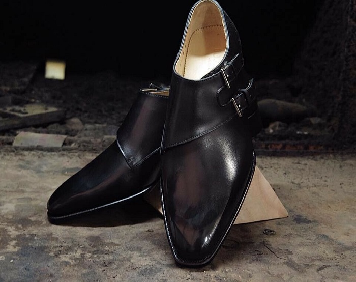 Handmade Men's Black Double Monk Strap Cap Toe Dress Shoes, Real Leather Shoes.