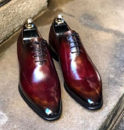 Handmade Men's Burgundy Leather Lace Up Shoes, Men Lace Up Dress Formal Shoes