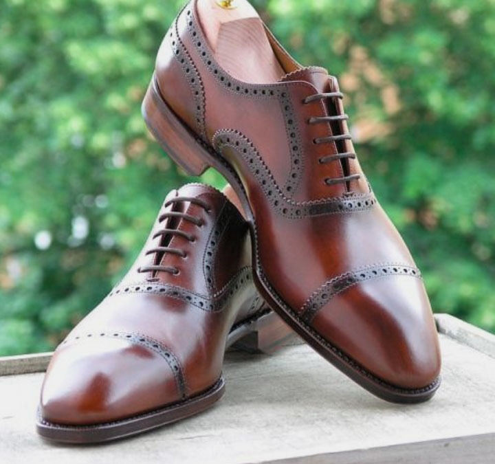 Men Elegant Brown Leather Cap Toe Lace Up Wedding Handmade Formal Shoes