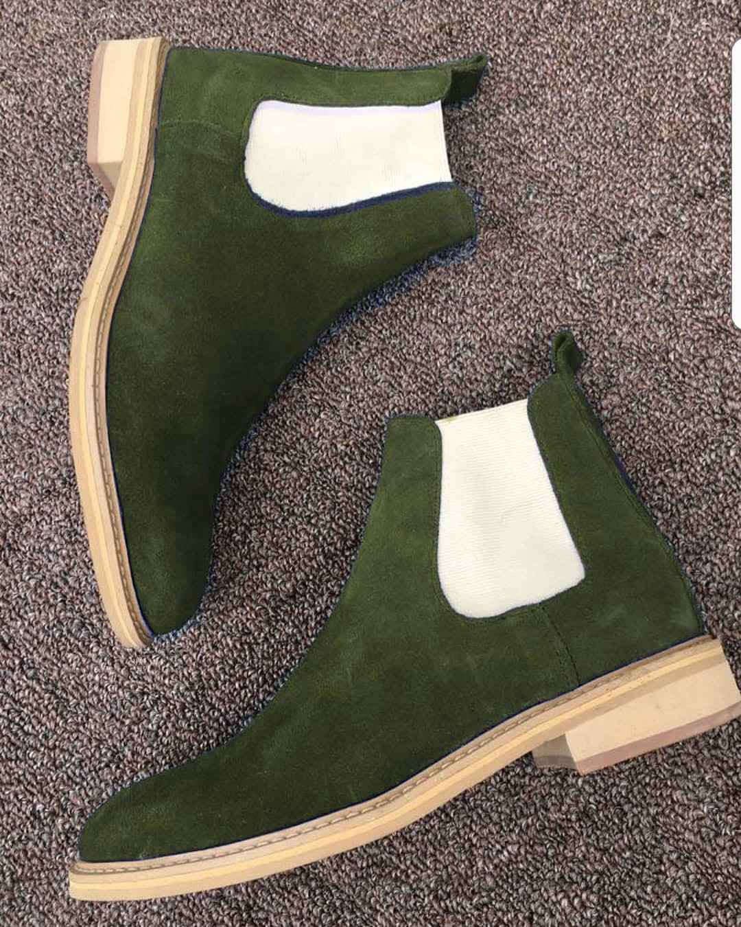 Green Suede Chelsea Fashion Mens Casual Wear Boot