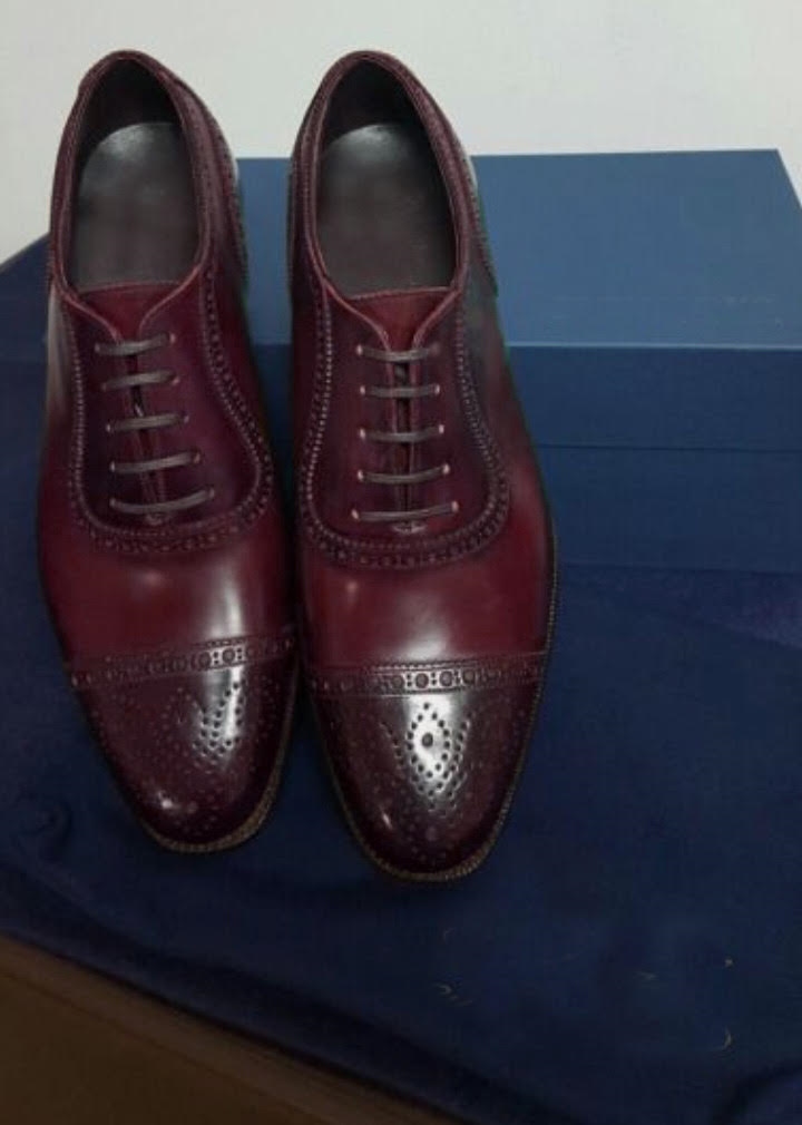 Men Maroon Leather Cap Toe Oxford Brough Formal Wear Shoes