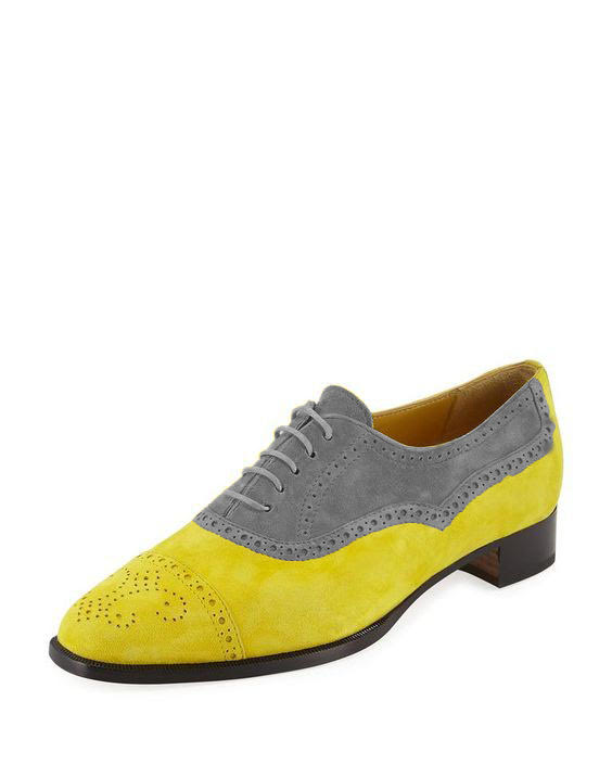 Medallion Style Cap Toe OxforDGray Suede Casual Wear Lace Up Shoes