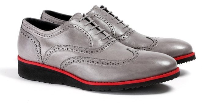 Handmade Men's Gray Color Leather Wing Tip Brogue Lace Up Dress Fashion Shoes