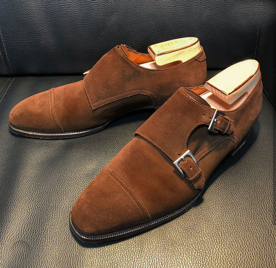 Men's Handmade Dark Brown Suede Double Monk Strap Cap Toe Dress Fashion Shoes