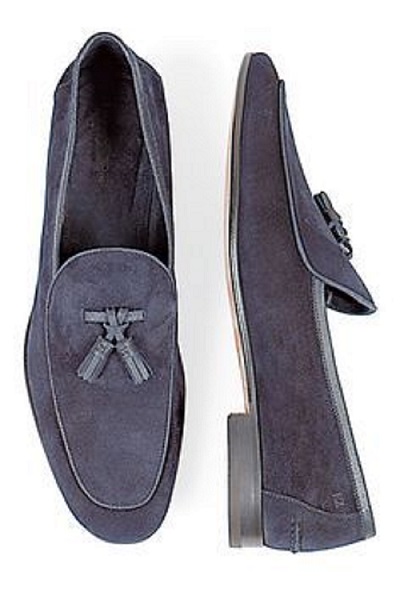 Handmade Gray Color Tassel Loafers Real Suede Leather Men's Formal Wedding Shoes