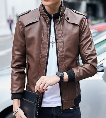 Handmade Men Stylish Brown Leather Formal Party Wear Jacket