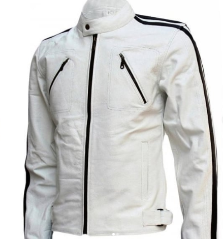 Men Handmade White Leather Fashion Casual Wear Jacket