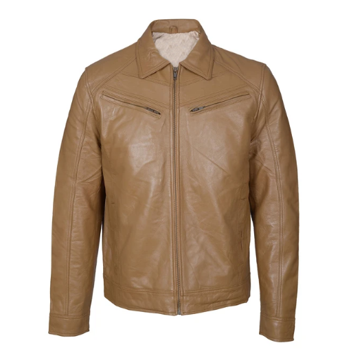 Men Hand Stitch Classic Brown Cowhide Leather Simple Formal Jacket