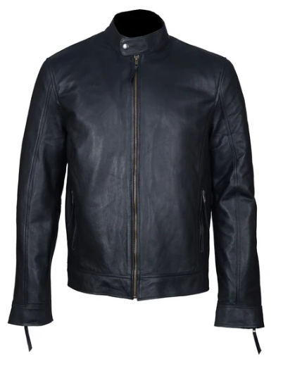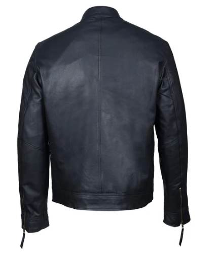 Men Fine Trendy Cowhide Genuine Black Leather Jeans Formal Jacket