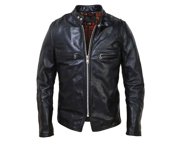 Black Men's Leather Biker Jacket With Button Tab Collar and Fastening Zipper