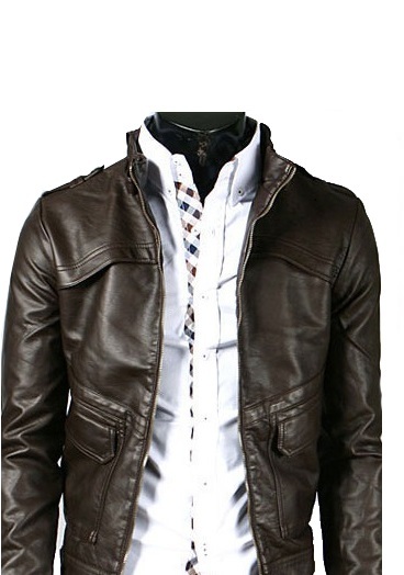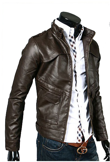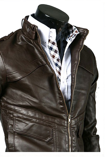 Men Biker Jacket Chocolate Brown Vintage Leather Belted Collar Front Zip Closure