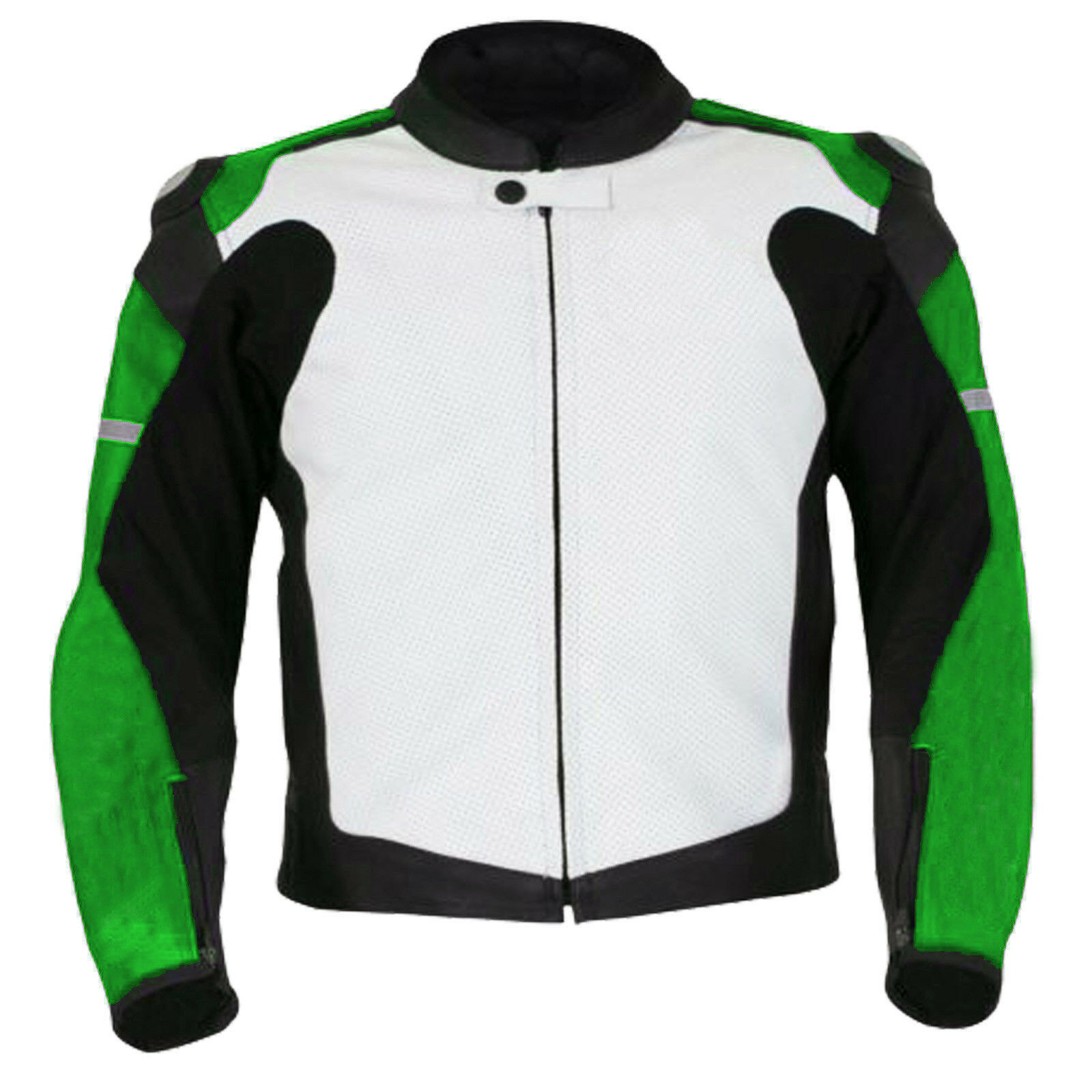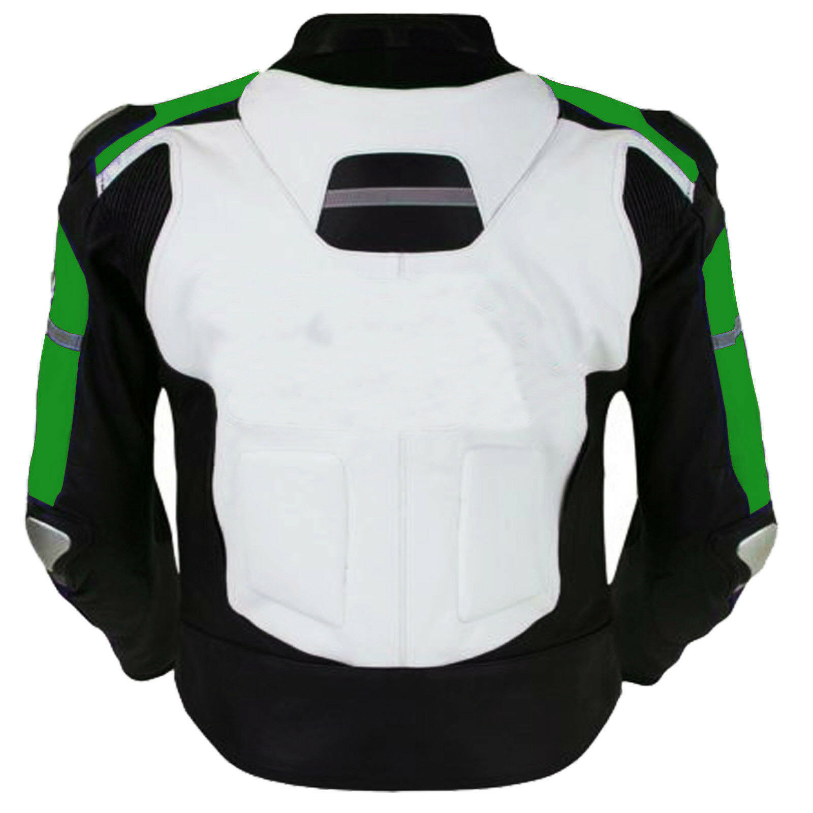 Men Black Green White Cont Motorbike Real Leather Safety Pads jacket Speed Hump