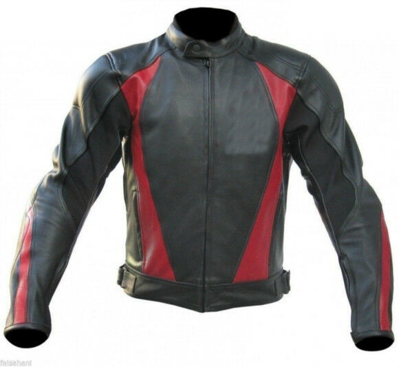 Men Black Red Motor Cycle Custom Genuine Cowhide Leather Safety Pads Jacket