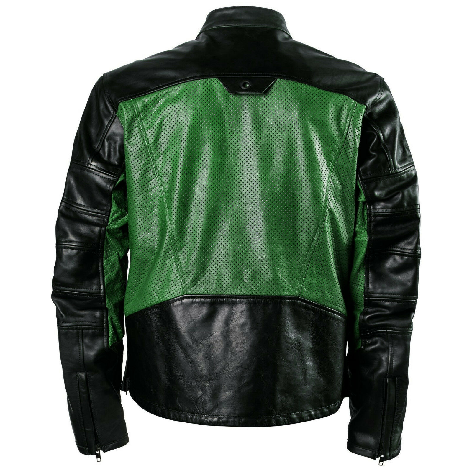 Perforated Men Black Green Cont Motorbike Genuine Real Leather Safety Pad jacket