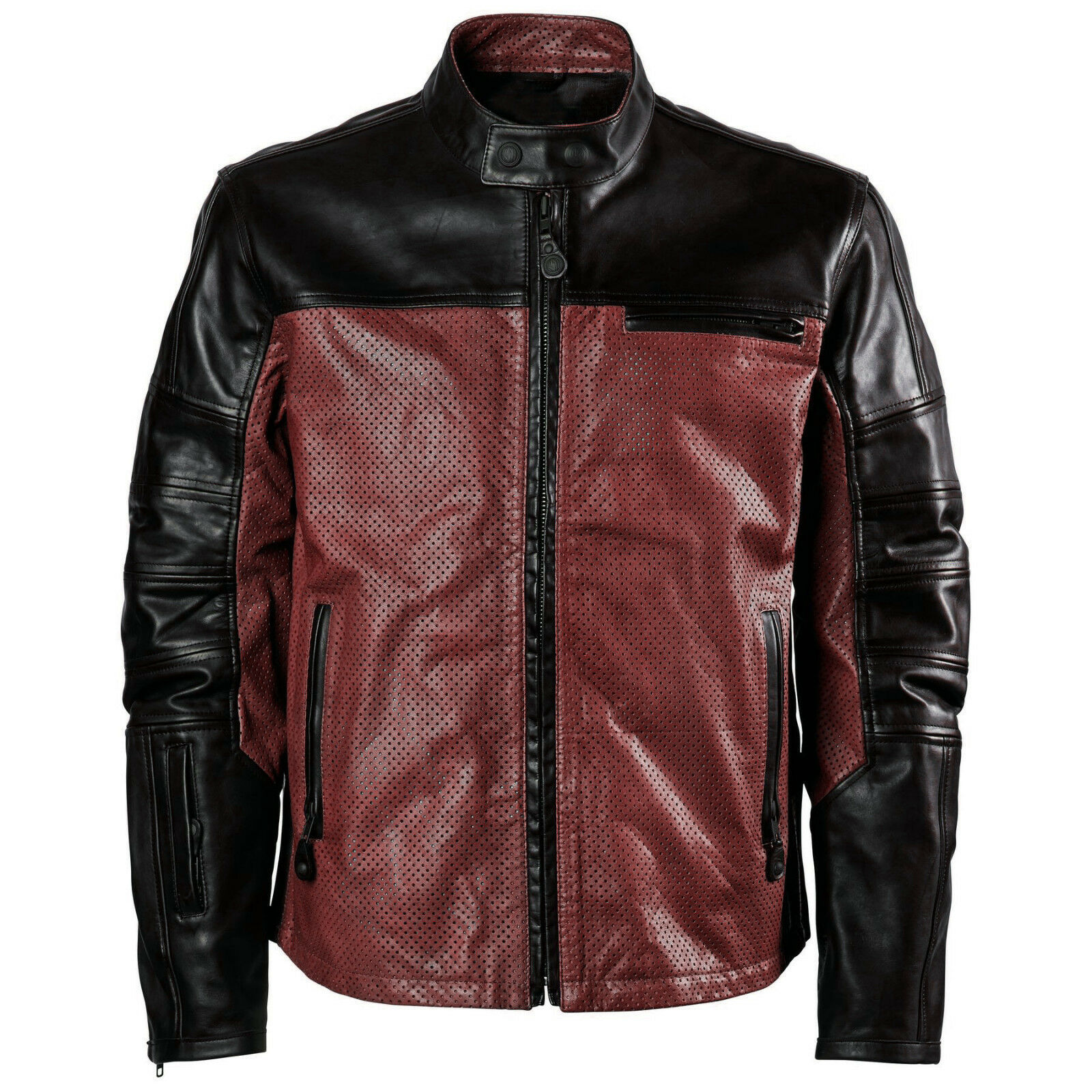 Two Tone Colors Men Black Maroon Motor Bike Genuine Leather Safety Pads jacket