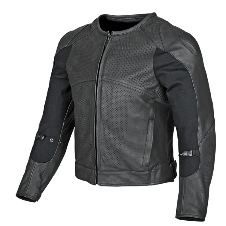 Perforated Men Black Color Motor Biker Genuine Leather Safety Pads Jacket