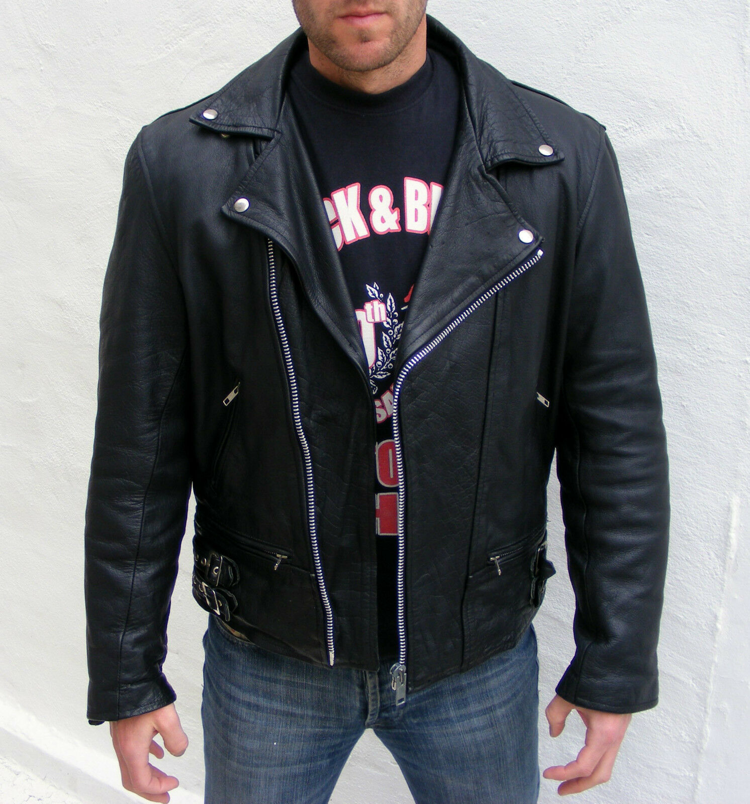 Men's Black Biker Brando Style Premium Leather Belted Four Zipped Pockets Jacket