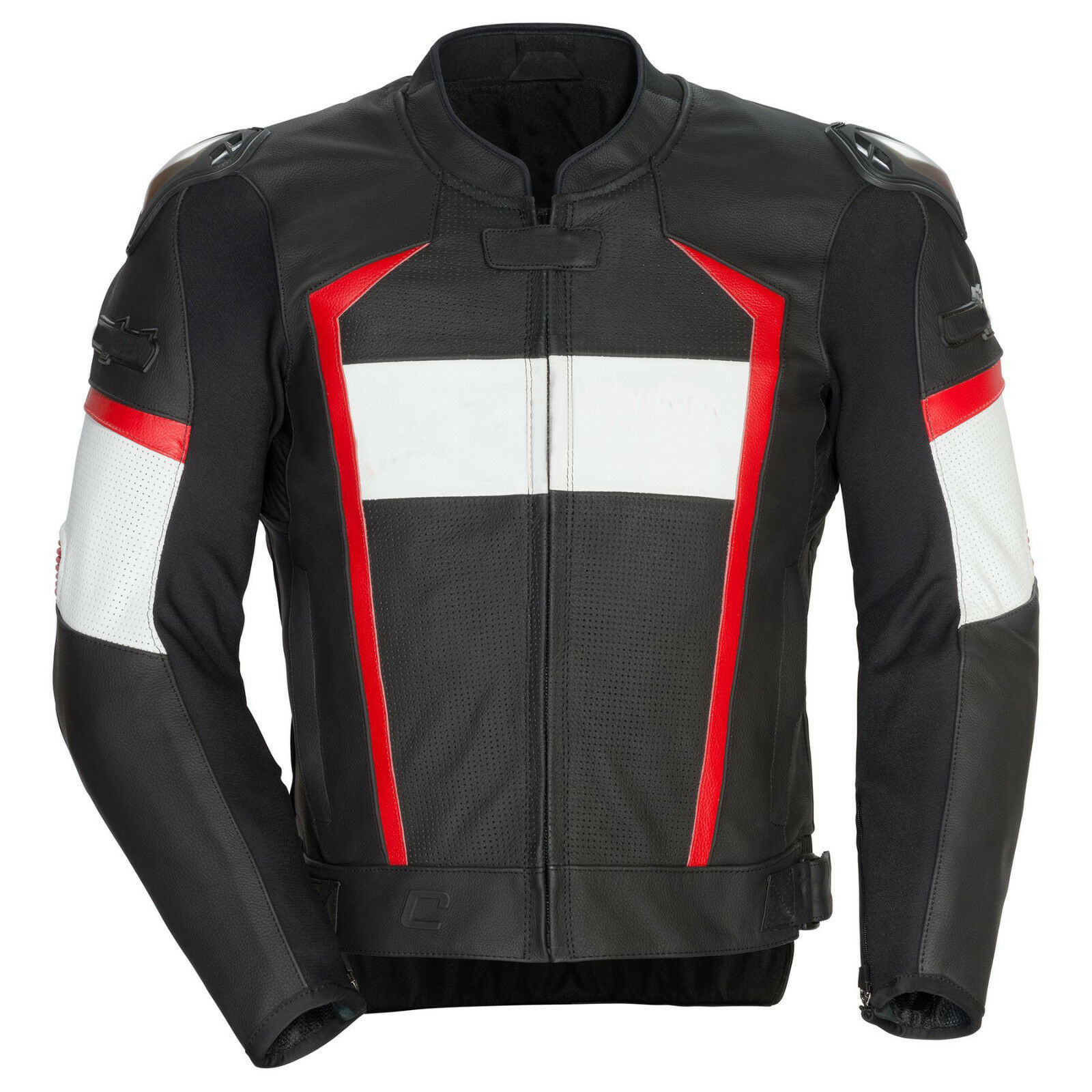 Men Three Tone Red White Black Genuine Leather Safety Pads jacket Speed Hump