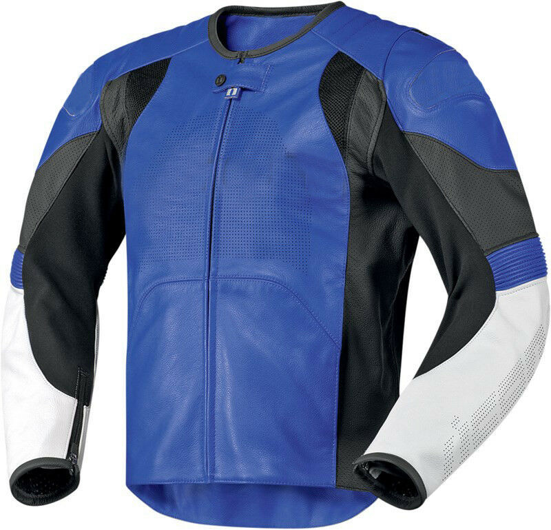 Men Three Tone Motor Cycle Perforated Genuine Cowhide Leather Safety Pads Jacket