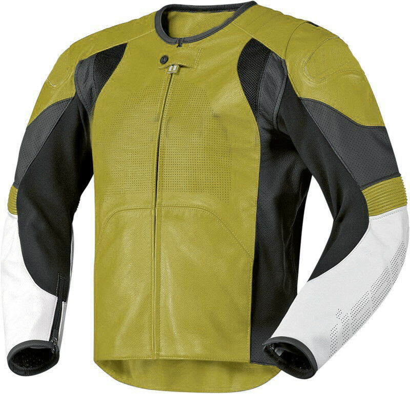 Men Three Tone Colors Motor Biker Custom Genuine Leather Safety Pads Jacket