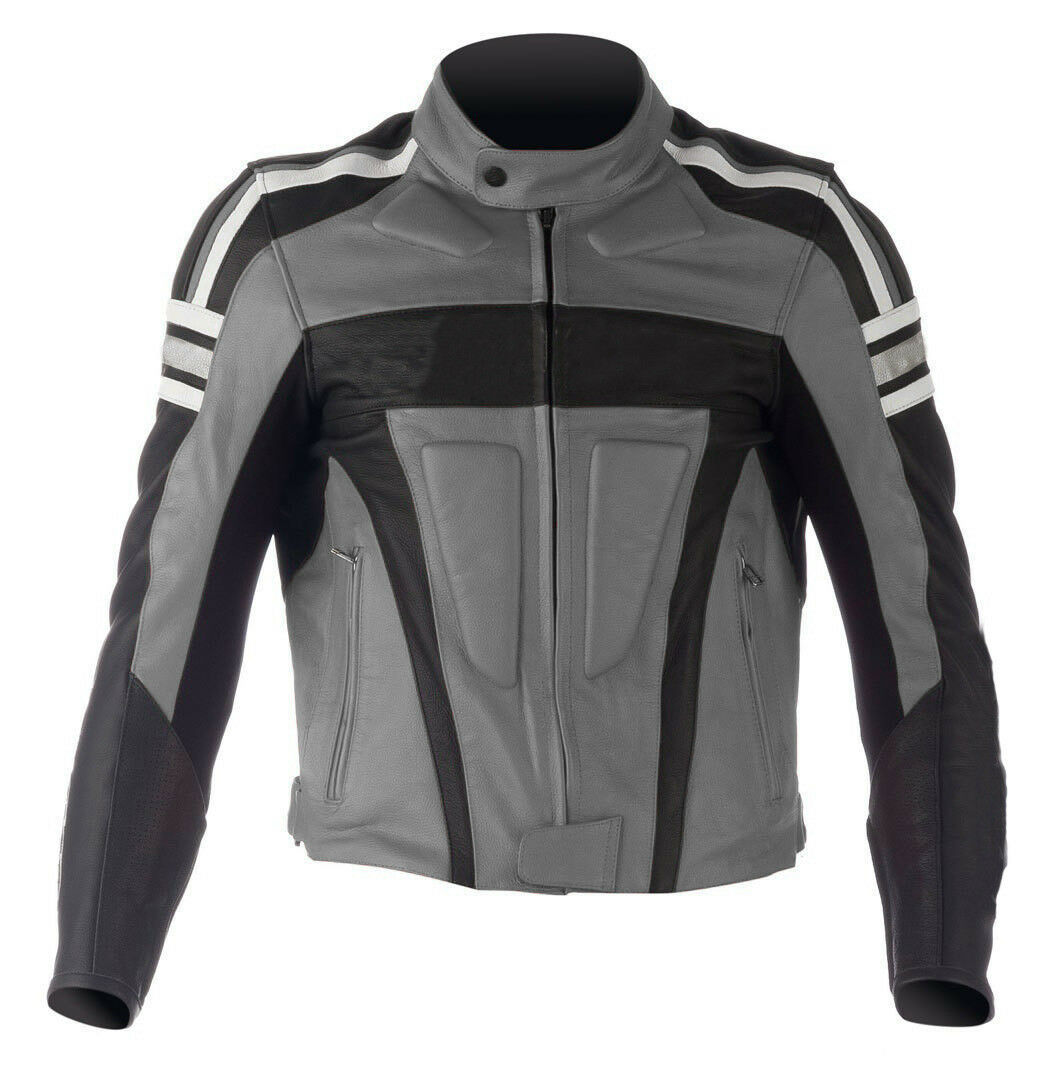 Men Three Tone Colors Motor Biker Handmade Genuine Leather Safety Pads Jacket