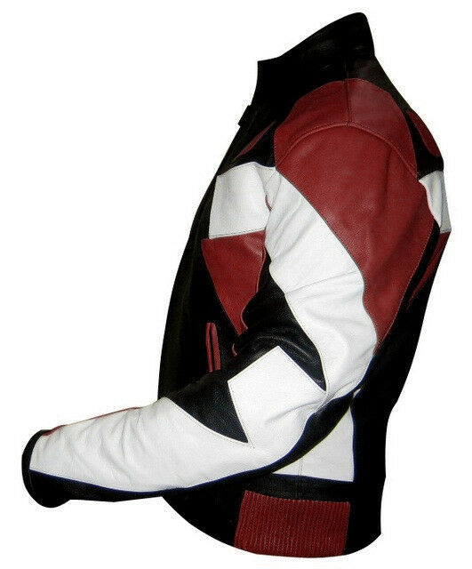 Men Three Tone Black Maroon White Motor Biker Genuine Leather Safety Pads Jacket