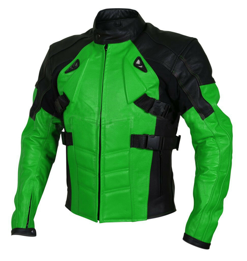 Men Two Tone Green Black Motorcycle Custom Genuine Leather Safety Pads jacket