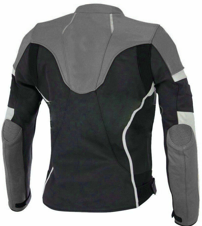 Men Grey & Black Biker White Linings Speed Hump Real Leather Safety Pads Jacket