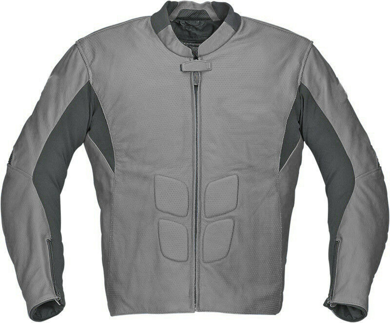 Men Gray Black Contrast Motor Biker Custom Genuine Leather Safety Pad Jacket